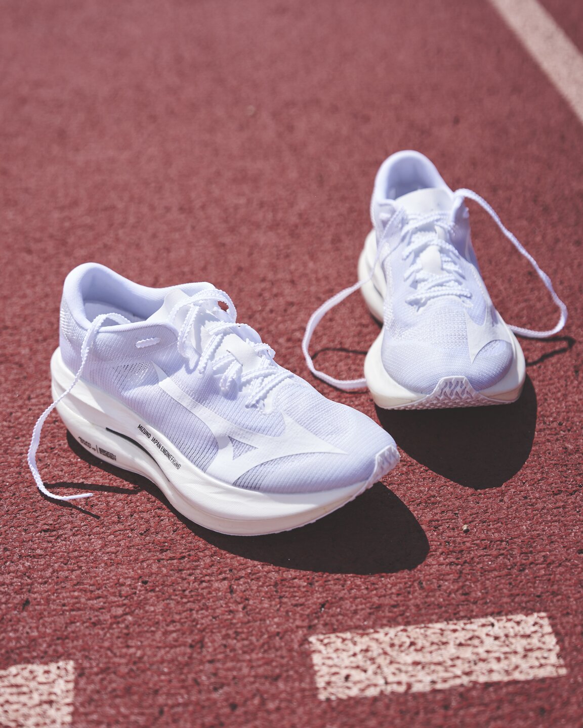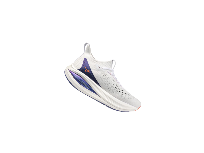 Between the two midsoles, Mizuno has inserted a wing-shaped carbon-infused plate that provides rigidity and stability.