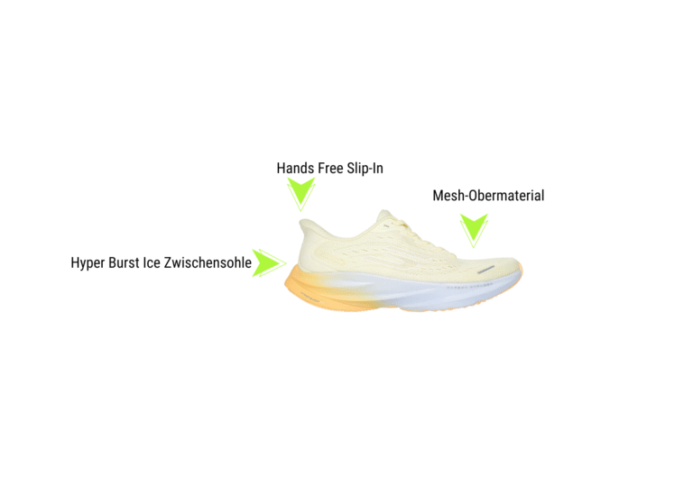 Especially for long distances, comfort plays an important role. The Skechers Aero Burst was developed for a comfortable and efficient running experience. It offers excellent cushioning, anatomical support, and reliable traction on various surfaces. The Hyper Burst Ice midsole ensures exceptional energy return with minimal weight. Ideal for staying fresh during long runs and maintaining a consistent pace even towards the end.